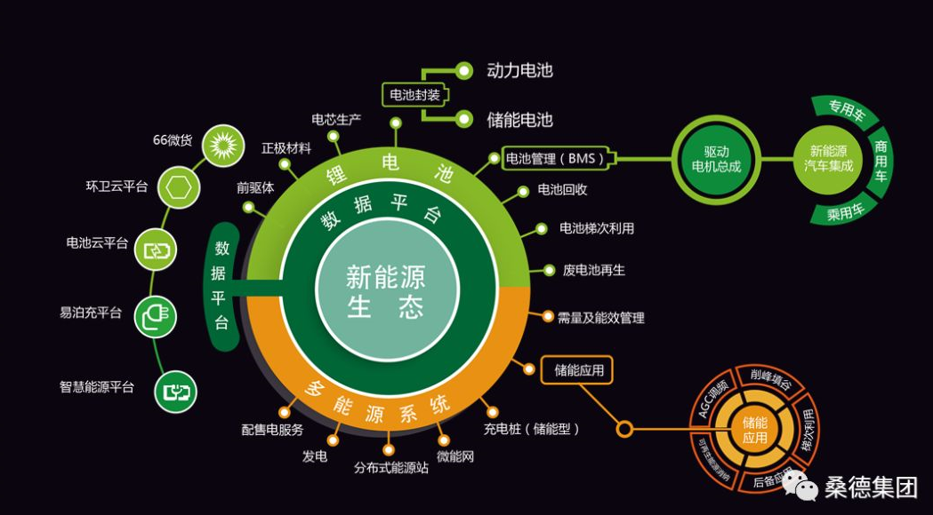他介紹,桑德新能源業(yè)務(wù)以電池(桑頓新能源)為核心,協(xié)同電池管理系統(tǒng)(優(yōu)旦科技)、電驅(qū)動(dòng)系統(tǒng)(意譜電動(dòng))、車聯(lián)網(wǎng)智能監(jiān)控平臺(tái)(智慧云行)、泊車充電(桑德無線)、儲(chǔ)能(桑德智慧能源)、電池回收及材料再生(鴻捷回收),并攜手桑德新環(huán)衛(wèi)、66微貨等,構(gòu)成一個(gè)開放融合的新能源全產(chǎn)業(yè)鏈循環(huán)圖。