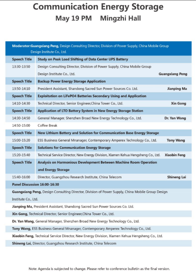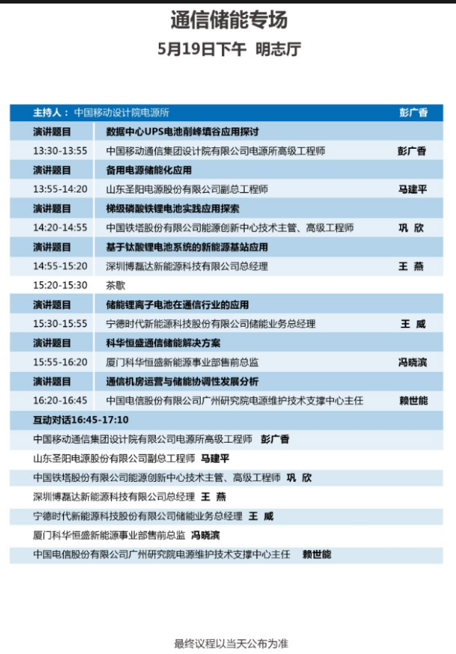 以下為通信儲(chǔ)能專(zhuān)場(chǎng)大會(huì)議程表。