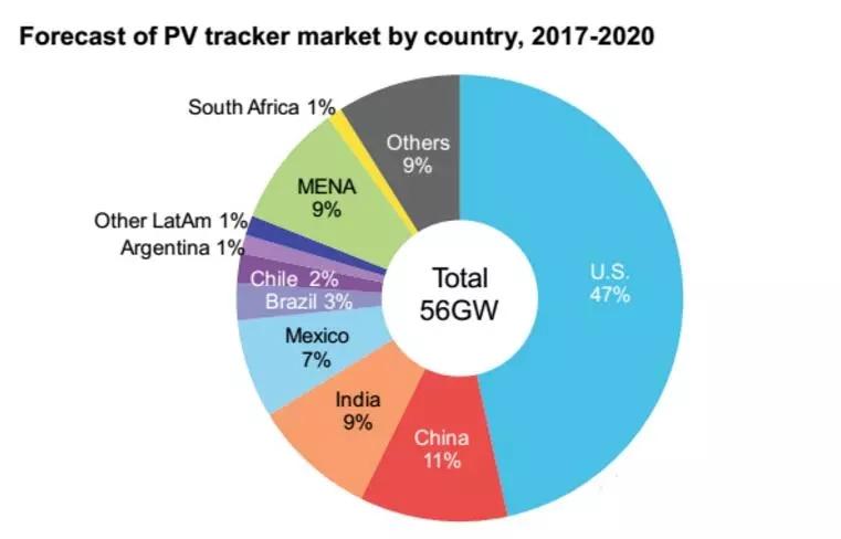 印榮方表示,“跟蹤支架是光伏系統(tǒng)技術(shù)發(fā)展的必然趨勢,預(yù)計(jì)未來5年內(nèi),跟蹤系統(tǒng)市場將保持15%的年增長速度,市場重心將從當(dāng)前的 美洲(拉美和美國)快速拓展到亞洲、中東等新興市場?!比ツ甑祝聿┥缧履茉唇鹑趫?bào)告中同樣指出,太陽能跟蹤支架前景一片光明,預(yù)計(jì)2017-2020年,跟蹤支架出貨量可達(dá)到56GW,市場主要集中在美國,中國印度次之。跟蹤支架如何抓住市場機(jī)會,一洗前些年的陰霾重新興起,助力光伏發(fā)電平價(jià)上網(wǎng)早日到來,值得期待。
