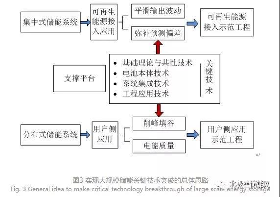 在充分評(píng)估該技術(shù)領(lǐng)域我國(guó)現(xiàn)有水平和國(guó)內(nèi)相關(guān)科研工作的基礎(chǔ)上,參考國(guó)外儲(chǔ)能技術(shù)相關(guān)技術(shù)路線圖,依據(jù)國(guó)家電網(wǎng)發(fā)展和建設(shè)對(duì)大規(guī)模儲(chǔ)能技術(shù)的迫切需求,應(yīng)該以集中式儲(chǔ)能系統(tǒng)在可再生能源接入中的應(yīng)用、分布式儲(chǔ)能系統(tǒng)在用戶側(cè)峰值負(fù)荷轉(zhuǎn)移和提高電能質(zhì)量中的應(yīng)用為目標(biāo)和突破口,集中力量解決制約大規(guī)模儲(chǔ)能技術(shù)在關(guān)鍵部件、容量、壽命、可靠性等方面的制約瓶頸,實(shí)現(xiàn)示范應(yīng)用。同時(shí)通過標(biāo)準(zhǔn)體系建設(shè)和完善,規(guī)范引導(dǎo)本體技術(shù)研發(fā),為儲(chǔ)能技術(shù)長(zhǎng)期健康發(fā)展奠定基礎(chǔ),滿足電網(wǎng)發(fā)展和建設(shè)對(duì)大規(guī)模儲(chǔ)能技術(shù)和裝置的迫切要求。