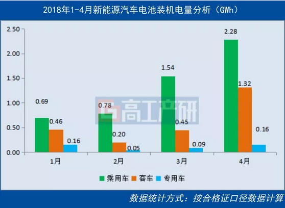 中國儲(chǔ)能網(wǎng)訊:高工產(chǎn)業(yè)研究院(GGII)最新數(shù)據(jù)統(tǒng)計(jì)顯示,2018年4月我國新能源汽車生產(chǎn)約8.7萬輛,同比增長148%,動(dòng)力電池裝機(jī)總電量約3.76GWh,同比增長304%。