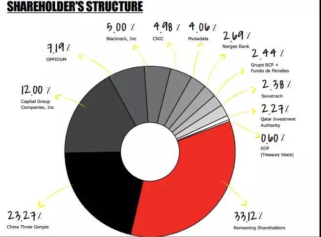 目前,EDP股東除三峽集團(tuán)外,還包括中國(guó)北方工業(yè)公司、美國(guó)金融服務(wù)公司Capital Group和美國(guó)私募股權(quán)公司Blackrock等。其中北方工業(yè)公司也是中國(guó)公司。
