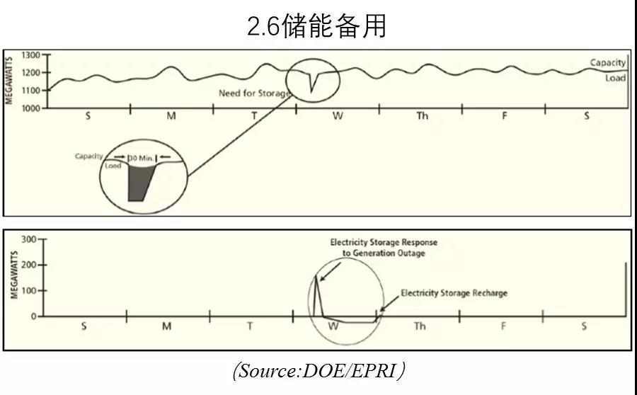 常規(guī)備用發(fā)電廠需要保持在線和運(yùn)行狀態(tài),而儲能電站作為備用不需要放電,只用在需要時(shí)放電即可。