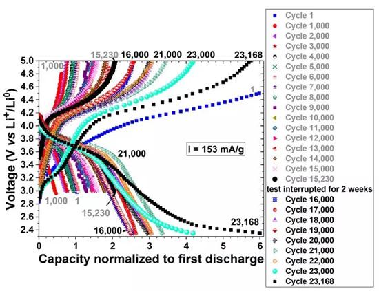 有人可能會問,幾年之后充放電肯定不止300圈了吧,說不定300圈之后材料就不行了?那你可能想錯了,這篇文章里面還有后續(xù)的實驗,告訴你這種材料設(shè)計循環(huán)23000圈也沒毛病,電池容量只會越來越高。