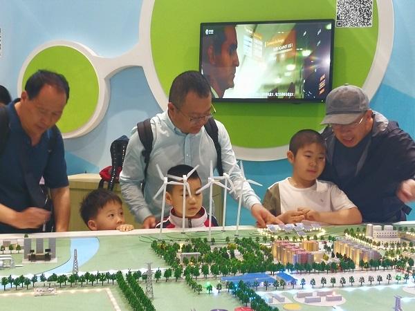 觀眾現(xiàn)場(chǎng)參觀能源互聯(lián)網(wǎng)全景圖