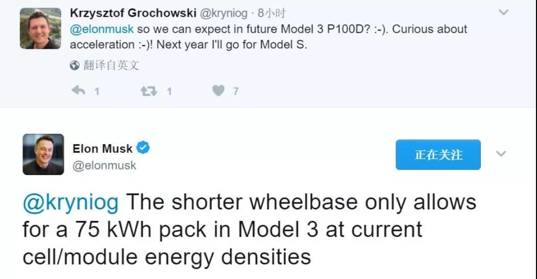 這條 Twitter 發(fā)布于 2017 年 3 月 24 日,而實(shí)際電池規(guī)格達(dá)到 78 kWh 是 8 月初被扒出來的。所以一種可能是 Twitter 發(fā)布后 Elon 繼續(xù)對工程制造團(tuán)隊(duì)施壓,在量產(chǎn)前的最后關(guān)頭大力出奇跡,成功多塞了幾度電進(jìn)去;不過我更愿意相信,是 Elon 考慮到 78 kWh 這個(gè)規(guī)格已經(jīng)高于 Model S 75D 的電池規(guī)格,避免 Model 3 影響后者的銷售 & 被 Model S 75D 車主眼中的怒火灼傷,特斯拉選擇宣傳上主動(dòng)減配。