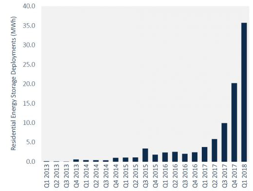 ?2018年第一季度部署了35.8兆瓦時的住宅儲能系統(tǒng)。