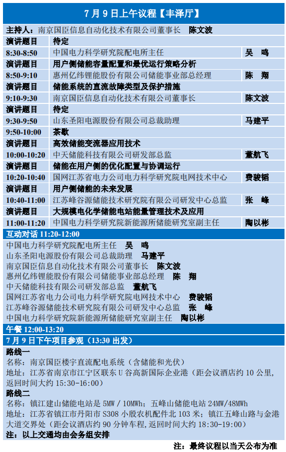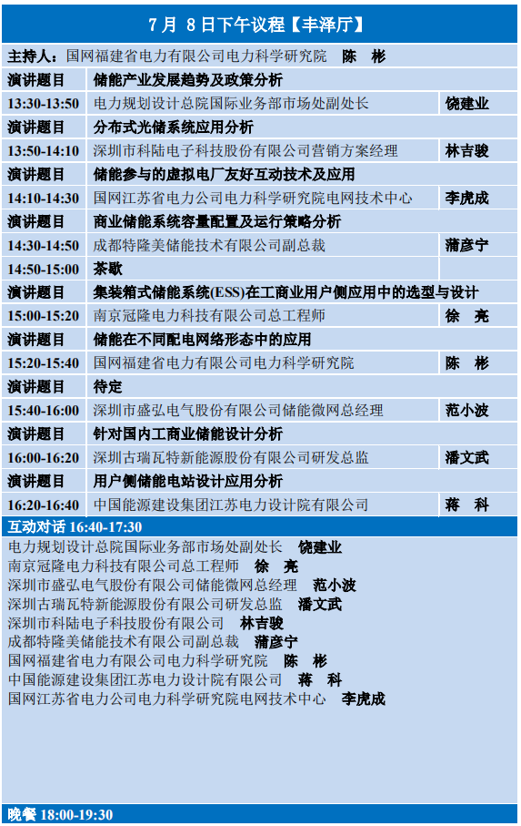 中國儲能網(wǎng)訊:為進(jìn)一步探討用戶側(cè)儲能通過參與提供電力輔助服務(wù)、需求響應(yīng)等多種電力服務(wù),發(fā)揮更多儲能應(yīng)用價值,提升項(xiàng)目運(yùn)行經(jīng)濟(jì)性。中國化學(xué)與物理電源行業(yè)協(xié)會儲能應(yīng)用分會決定聯(lián)合國網(wǎng)江蘇省電力有限公司、江蘇省電機(jī)工程學(xué)會、全國微電網(wǎng)與分布式電源并網(wǎng)標(biāo)準(zhǔn)化技術(shù)委員會、中國能源建設(shè)集團(tuán)江蘇省電力設(shè)計(jì)院有限公司于2018年7月8—9日在江蘇省南京市召開“第二屆全國用戶側(cè)儲能細(xì)分市場開發(fā)和應(yīng)用高層研討會”,具體議程如下: