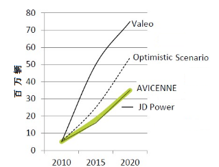 圖1 幾家著名機(jī)構(gòu)統(tǒng)計(jì)和預(yù)測(cè)的世界微混車市場(chǎng)銷售量趨勢(shì)