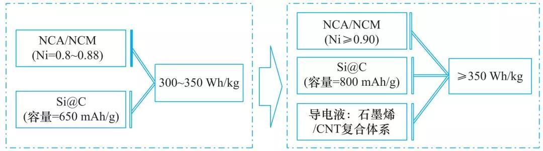 圖 1 300 Wh/kg 以上三元?jiǎng)恿﹄姵丶夹g(shù)路線