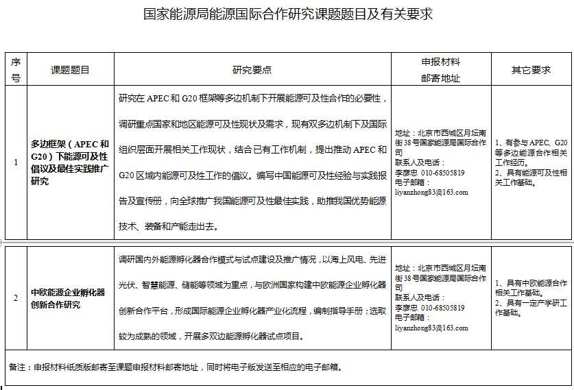 國家能源局2018年能源國際合作研究課題招標(biāo)公告