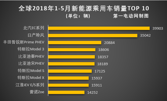 從今年前五個(gè)月的累計(jì)銷量排名看,北汽EC系列、日產(chǎn)聆風(fēng)、豐田普銳斯Prime PHEV包攬前三。?