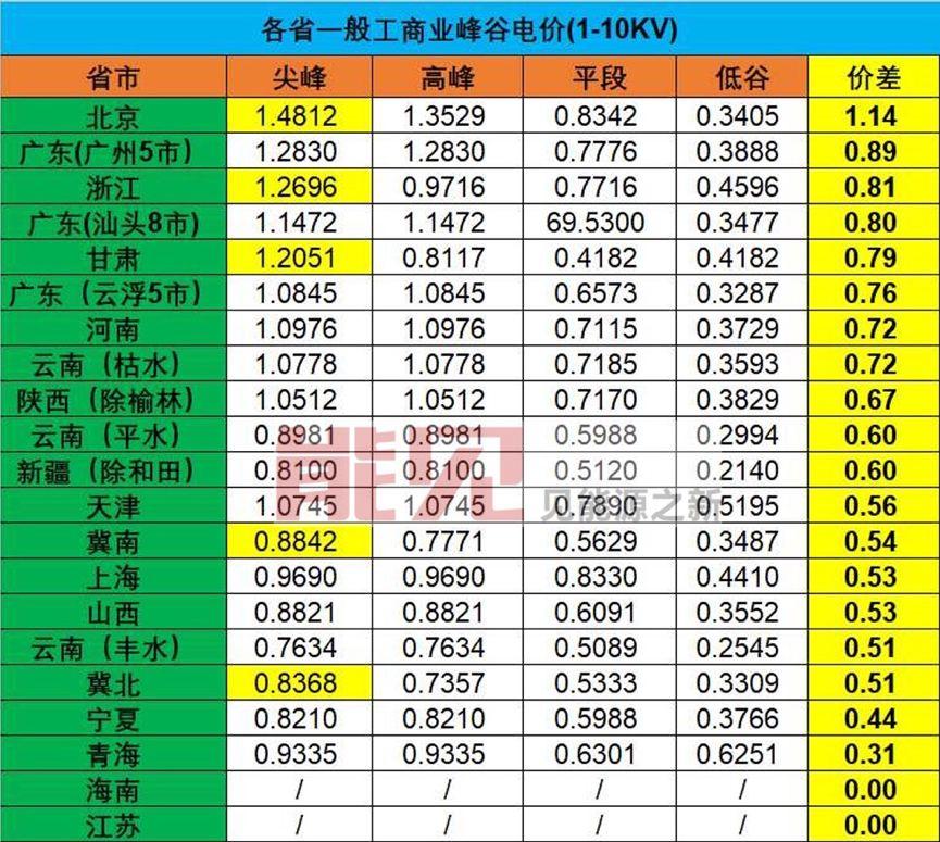 對(duì)于目前的峰谷電價(jià)水平,行業(yè)普遍認(rèn)為,推動(dòng)用戶側(cè)儲(chǔ)能行業(yè)的發(fā)展,峰谷電價(jià)差7毛是一個(gè)檻。