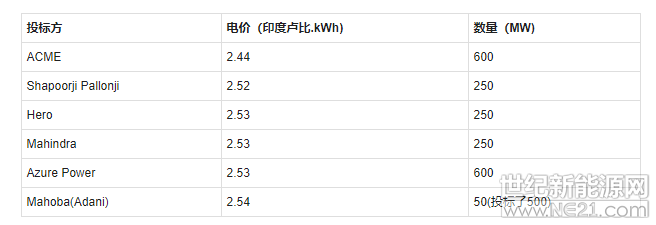 Adani集團的Mahoba Solar公司投標了500MW項目,但僅分得50MW。 ReNew Power和Fortum公司的報價分別為2.56盧比和2.76盧比,錯失項目。