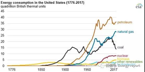 美國的能源消費量在國家歷史進(jìn)程中經(jīng)歷了許多變化,從木材作為十八、十九世紀(jì)的主要來源到煤炭和石油利用的開始,再到二十世紀(jì)后期核電的崛起,以及二十一世紀(jì)初的可再生能源的逐步爆發(fā)。