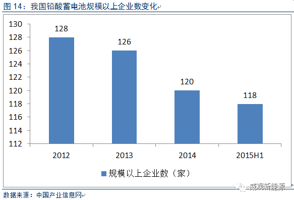激烈的市場(chǎng)競(jìng)爭(zhēng)和環(huán)保政策壓力加速鉛酸電池行業(yè)整合、兼并重組的進(jìn)程,規(guī)模效應(yīng)將在行業(yè)優(yōu)勢(shì)企業(yè)中發(fā)揮作用。統(tǒng)計(jì)顯示,截止2012年國(guó)內(nèi)鉛酸蓄電池企業(yè)共2000多家,其中產(chǎn)值超過20億元的企業(yè)約有10家,超過1億元的企業(yè)約有260家,整個(gè)行業(yè)的集中度非常分散,遠(yuǎn)遠(yuǎn)低于美國(guó)、日本等國(guó)家。隨著環(huán)保部下發(fā)的《關(guān)于加強(qiáng)鉛蓄電池及再生鉛行業(yè)污染防治工作的通知》以及工信部出臺(tái)的《鉛酸電池行業(yè)準(zhǔn)入條件》的出臺(tái),未來(lái)行業(yè)整合的手段將會(huì)在產(chǎn)能限制、技術(shù)限制、選址限制等三個(gè)方面落實(shí),眾多中小企業(yè)將逐漸退出,整合轉(zhuǎn)型及技術(shù)升級(jí)將成為行業(yè)未來(lái)發(fā)展的主要趨勢(shì)。規(guī)模以上企業(yè)在逐年減少,目前,鉛酸蓄電池的廠商由2000多家減少至不到50家,整個(gè)行業(yè)集中度得到提高。