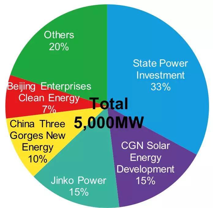 國(guó)家電投以33%的額度成為第三批領(lǐng)跑基地中標(biāo)體量最大的企業(yè),其次為中廣核、晶科。