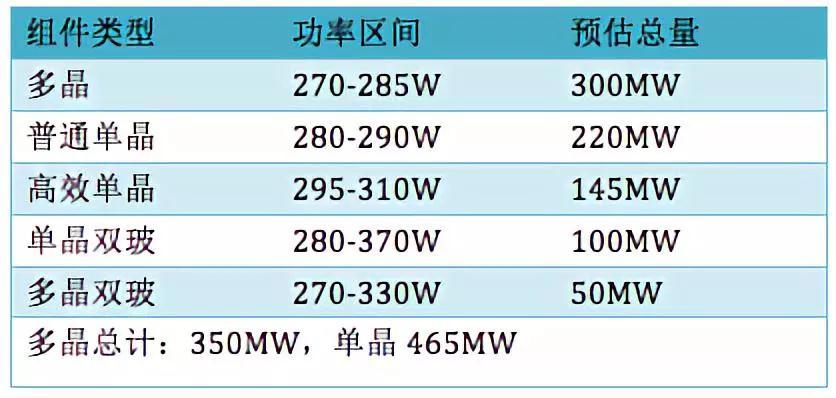 中國(guó)能建對(duì)組件的招標(biāo)要求相對(duì)比較具有全面性,從組件技術(shù)選型看,單晶占比多于多晶已成常態(tài),相比國(guó)家電投的招標(biāo),能建招標(biāo)更“親民”,在這里我們看到一些二線光伏制造商進(jìn)入招標(biāo)候選人名單,如:湖南紅太陽(yáng)、唐山海泰新能源等。