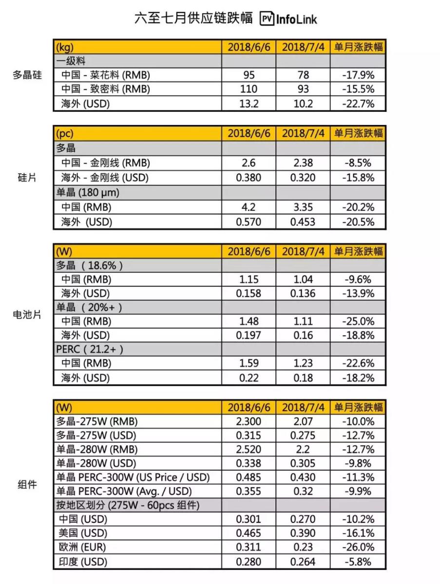 受國(guó)內(nèi)影響,海外光伏組件開始出現(xiàn)下降。