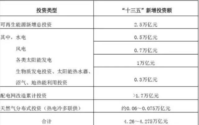 從可再生能源投資力度來(lái)看,光伏發(fā)電成為各類可再生能源中的投資重點(diǎn)?!犊稍偕茉窗l(fā)展“十三五”規(guī)劃》顯示,到2020年,我國(guó)水電將新增投資約5000億元;我國(guó)新增風(fēng)電投資約7000億元;我國(guó)新增各類太陽(yáng)能發(fā)電投資約1萬(wàn)億元。加上生物質(zhì)發(fā)電投資、太陽(yáng)能熱水器、沼氣、地?zé)崮芾玫?,“十三五”期間可再生能源新增投資約2.5萬(wàn)億元。
