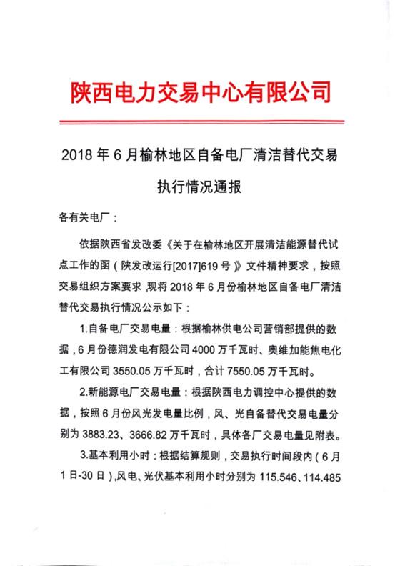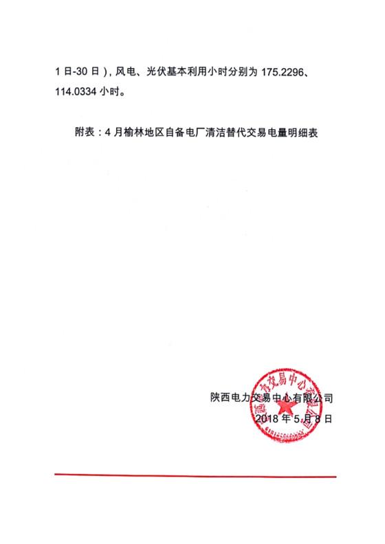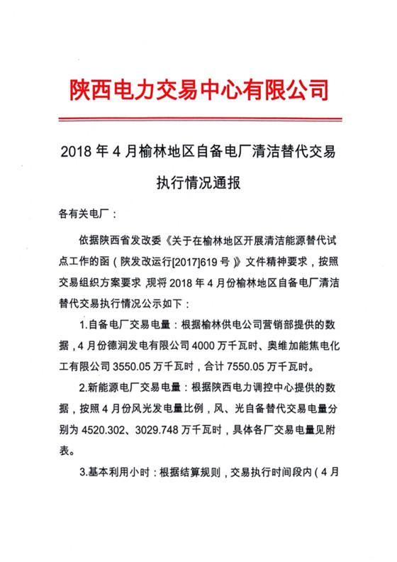 2018年4-6月榆林地區(qū)自備電廠(chǎng)清潔替代 交易執(zhí)行情況通報(bào)