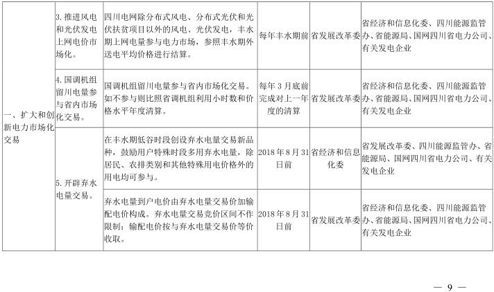 (一)擴大和創(chuàng)新電力市場化交易。進一步放開發(fā)用電計劃,擴大電力市場化交易規(guī)模。完善市場化交易規(guī)則,減少行政干預(yù),在交易對象、交易品種、交易價格、交易方式等方面尊重市場選擇。推進各類市場主體公平參與市場交易。探索電力價格和發(fā)電計劃增減掛鉤機制。