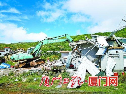 - 昨日上午,在同安區(qū)汀溪鎮(zhèn)汪前村的荇后自然村,廈門抽水蓄能電站項目上庫導(dǎo)流洞涉及房屋的拆除作業(yè)正有序開展。工作人員首先拉起安全警戒線,再次確認清場完畢后,開進挖掘機進行拆除。該導(dǎo)流洞涉及的房屋均為磚混結(jié)構(gòu)平房,一個上午就完成了3棟涉及房屋的拆除任務(wù)。