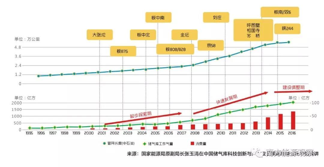 中國的儲氣調(diào)峰能力建設(shè)啟動于1999年,隨著西氣東輸?shù)忍烊粴忾L輸管道建設(shè)及天然氣工業(yè)發(fā)展而發(fā)展,歷經(jīng)起步探索期和快速發(fā)展初期兩個階段。中國首次大規(guī)模采用儲氣庫調(diào)峰,始于陜京輸氣管道工程。為了解決北京市季節(jié)用氣不均衡的問題,保證向北京市穩(wěn)定供氣,1999年,中石油修建了大港油田大張坨地下儲氣庫。大港儲氣庫除了向北京供氣以外,還有部分天然氣供應(yīng)天津、河北滄州等地。為保證供氣安全,2001年來,繼大張坨地下儲氣庫后,中石油又陸續(xù)建成了板876地下儲氣庫和板中北高點(diǎn)地下儲氣庫。