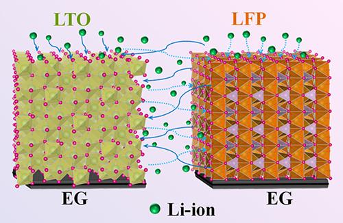 最近,該研究團隊率先開發(fā)出一種全固態(tài)平面集成化的鋰離子微型電池。該鋰離子微型電池以納米鈦酸鋰納米球為負極,磷酸鐵鋰微米球為正極,高導電石墨烯為非金屬集流體,離子凝膠為電解液,具有平面十指交叉構(gòu)型且無需使用傳統(tǒng)隔膜和金屬集流體。獲得的鋰離子微型電池具有多方向傳質(zhì)的優(yōu)勢,表現(xiàn)出高體積能量密度125.5mWh/cm3,優(yōu)異的倍率性能;超長的循環(huán)穩(wěn)定性,3300次循環(huán)后容量基本沒有衰減;以及良好的機械柔性,在反復彎曲或扭曲下其電極結(jié)構(gòu)無損壞以及電化學性能無明顯變化。同時,該微型儲能器件能在100°C的高溫環(huán)境下穩(wěn)定工作且具有長循環(huán)穩(wěn)定性(1000次循環(huán))。此外,該鋰離子電池無需金屬連接體便能實現(xiàn)模塊化自集成,實現(xiàn)輸出電壓和容量的有效調(diào)控。因此,該鋰離子微型電池在柔性化、微型化電子器件的應用中具有很大潛力。