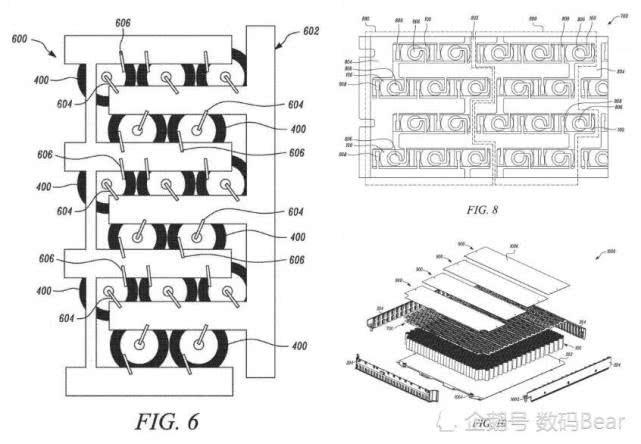 在電池組件的層面上,特斯拉正在為一項(xiàng)新設(shè)計(jì)申請(qǐng)專利,該設(shè)計(jì)的電池在電池失效的情況下會(huì)破裂,并釋放出氣體。下面是一些來(lái)自專利申請(qǐng)的圖片。