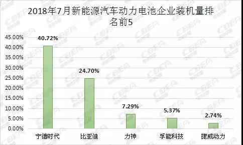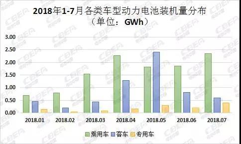 從車輛細(xì)分領(lǐng)域來(lái)看,2018年7月,我國(guó)新能源乘用車動(dòng)力電池裝機(jī)量為2.35 Gwh,占比達(dá)70.36%,環(huán)比增長(zhǎng)27.19%;新能源客車動(dòng)力電池裝機(jī)量為0.60 Gwh,占比為17.95%,環(huán)比下降26.75%;新能源專用車動(dòng)力電池裝機(jī)量為0.39 Gwh,占比為11.69%,環(huán)比增長(zhǎng)98.20%。