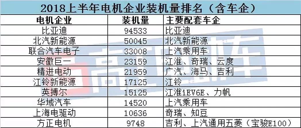 對比2017年電機(jī)裝機(jī)量TOP 10來看,今年上半年,英搏爾、華域汽車擠進(jìn)了前十名,主要原因是這兩家企業(yè)配套的新能源乘用車上半年有不錯的銷量。