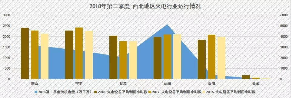 2018上半年,我國西北地區(qū)火電裝機容量增長地區(qū)差異較大。與去年同期相比,其中新疆、寧夏,陜西增幅較大,分別達(dá)到531萬千瓦、386萬千瓦、135萬千瓦。其余省份基本與去年保持持平,而青海則出現(xiàn)了一定規(guī)模的下滑。