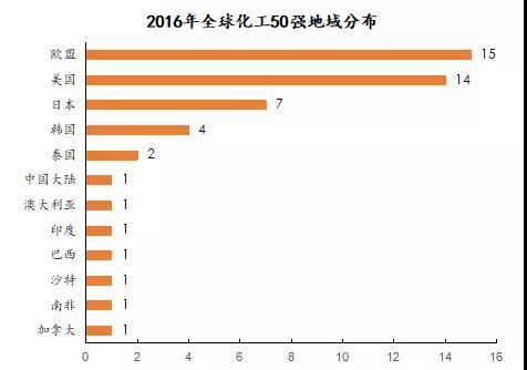 圖6 2016年全球化工50強(qiáng)地域分布