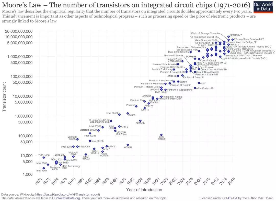 圖4 摩爾定律示意圖(1971-2016年)