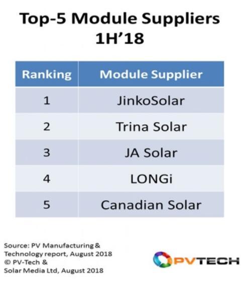 中國(guó)儲(chǔ)能網(wǎng)訊:全球光伏行業(yè)前五大光伏組件供應(yīng)商在2018年上半年出貨量超過(guò)20吉瓦,同比增長(zhǎng)10%。