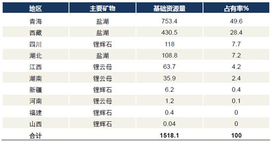 中國鋰礦資源豐富,擁有礦床多規(guī)模大的特點,我國的鋰礦床一共151處,并且鋰礦床儲量明顯集中在青藏高原地區(qū),此外湖南、新疆、河南、福建、陜西等5個省產(chǎn)量也較高。