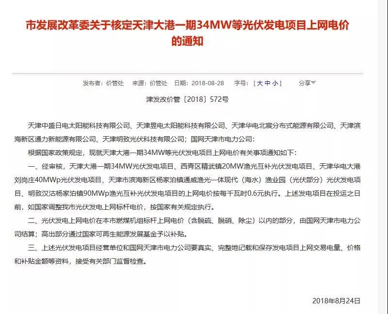 根據(jù)國(guó)家政策規(guī)定,現(xiàn)就天津大港一期34MW等光伏發(fā)電項(xiàng)目上網(wǎng)電價(jià)有關(guān)事項(xiàng)通知如下: