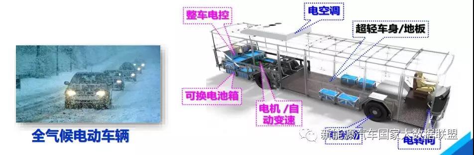 全氣候電動(dòng)汽車(chē)-全氣候電池,電動(dòng)車(chē)怕熱,也怕冷,很多在北方開(kāi)車(chē)的人有強(qiáng)烈的感受,現(xiàn)在通過(guò)冬奧會(huì)國(guó)家和北京市的重大專(zhuān)項(xiàng),解決電動(dòng)車(chē)輛再無(wú)高寒環(huán)境禁區(qū)。我們?cè)?2月底把車(chē)?yán)綎|北零下35-40度環(huán)境下進(jìn)行測(cè)試,希望續(xù)駛里程降低不超過(guò)5%。高寒環(huán)境的核心問(wèn)題是電池,電池可以通過(guò)外部加熱、內(nèi)部加熱和保溫隔熱等措施解決問(wèn)題,使未來(lái)新能源汽車(chē)應(yīng)用不再有禁區(qū)。