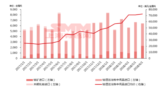 中國儲能網(wǎng)訊:2018年上半年中國鈷原料進口約3.94萬噸金屬噸,環(huán)比增長27.5%,同比增長12%其中鈷礦0.78萬噸,環(huán)比增長101%,同比增長87%;鈷濕法冶煉中間品3.16萬噸,環(huán)比增長17%,同比增長2%。