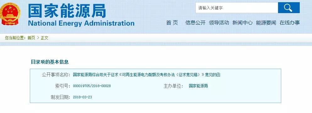 為全面貫徹黨的十九大精神,推動能源生產和消費革命,促進生態(tài)文明建設,依據(jù)《中華人民共和國可再生能源法》,我們組織研究起草了《可再生能源電力配額及考核辦法(征求意見稿)》及其編制說明。請你單位結合職能研提意見,并請于3月30日前將書面意見反饋我局新能源司。
