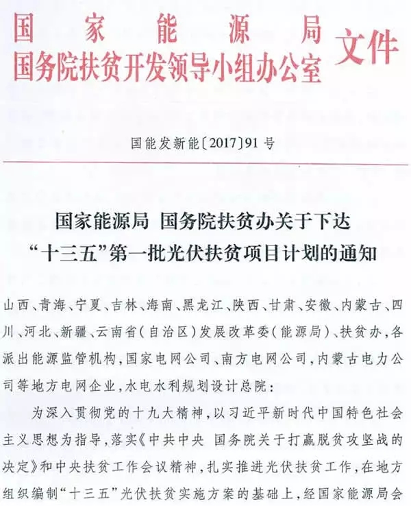 中國儲能網(wǎng)訊:近日,國家能源局、國務(wù)院扶貧辦聯(lián)合發(fā)布《關(guān)于下達(dá)“十三五”第一批光伏扶貧項(xiàng)目計劃的通知》,正式下發(fā)“十三五”第一批光伏扶貧項(xiàng)目。
