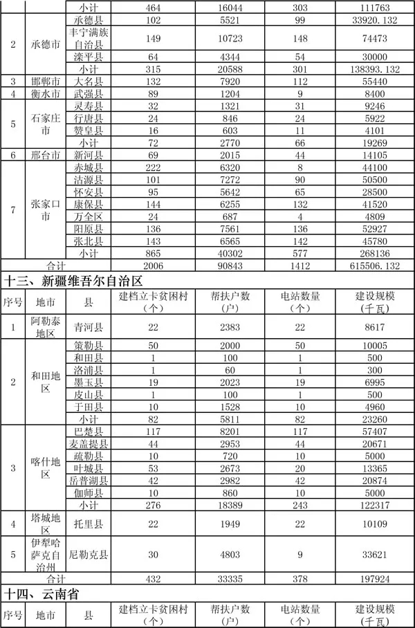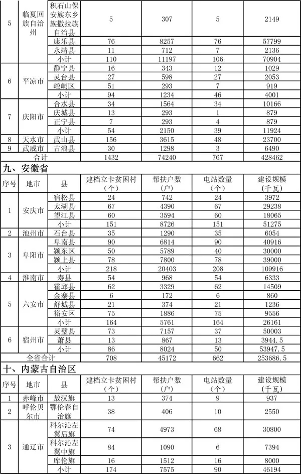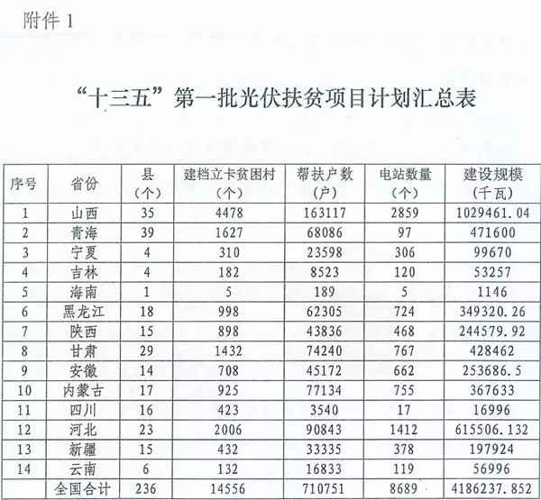 本批下達(dá)14個?。ㄗ灾螀^(qū))、236個光伏扶貧重點(diǎn)縣的光伏扶貧項(xiàng)目,共8689個村級電站,總裝機(jī)規(guī)模4186237.852千瓦,扶持對象為14556個建檔立卡貧困村的710751戶建檔立卡貧困戶。