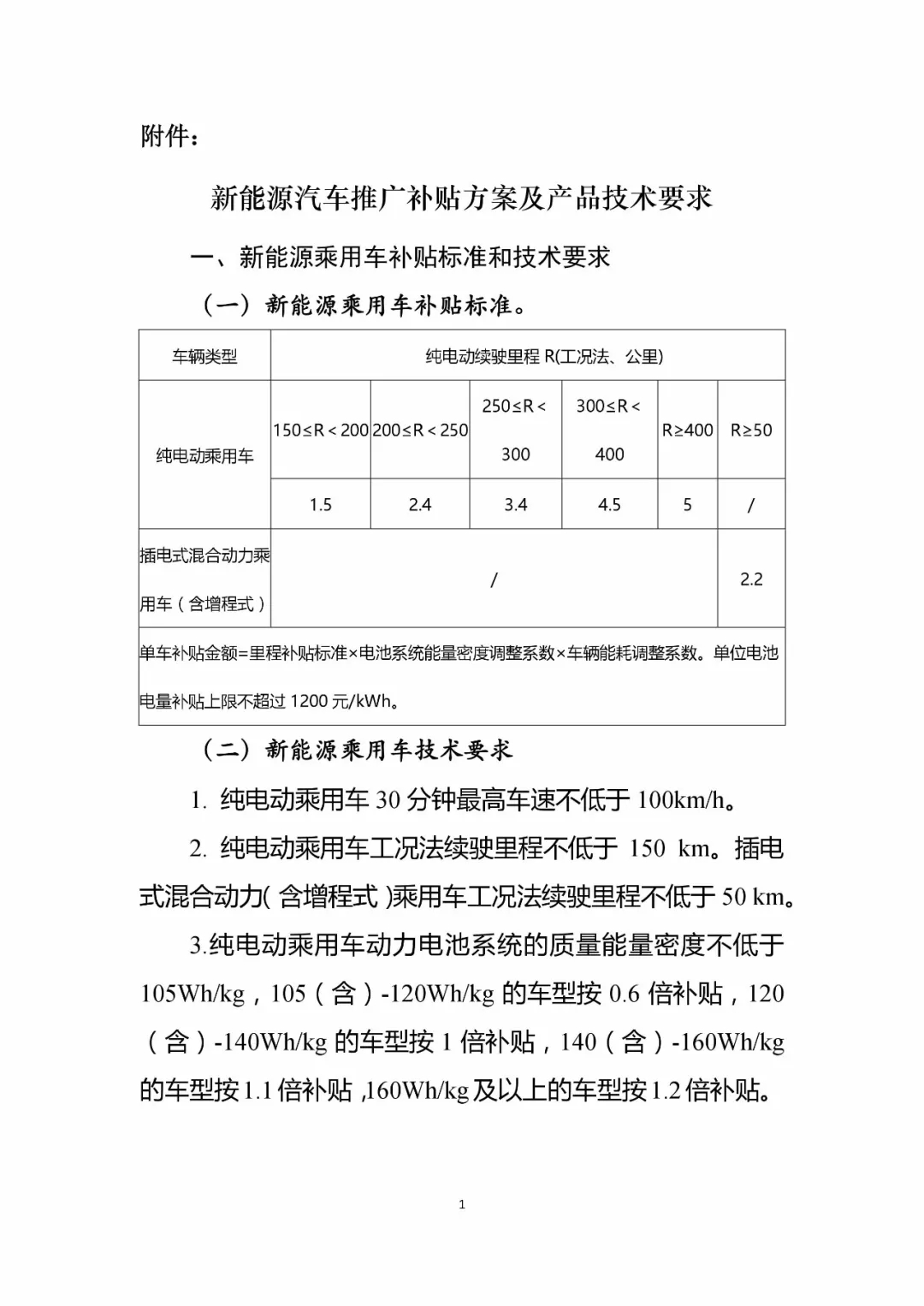 附件:新能源汽車推廣補貼方案及產(chǎn)品技術(shù)要求