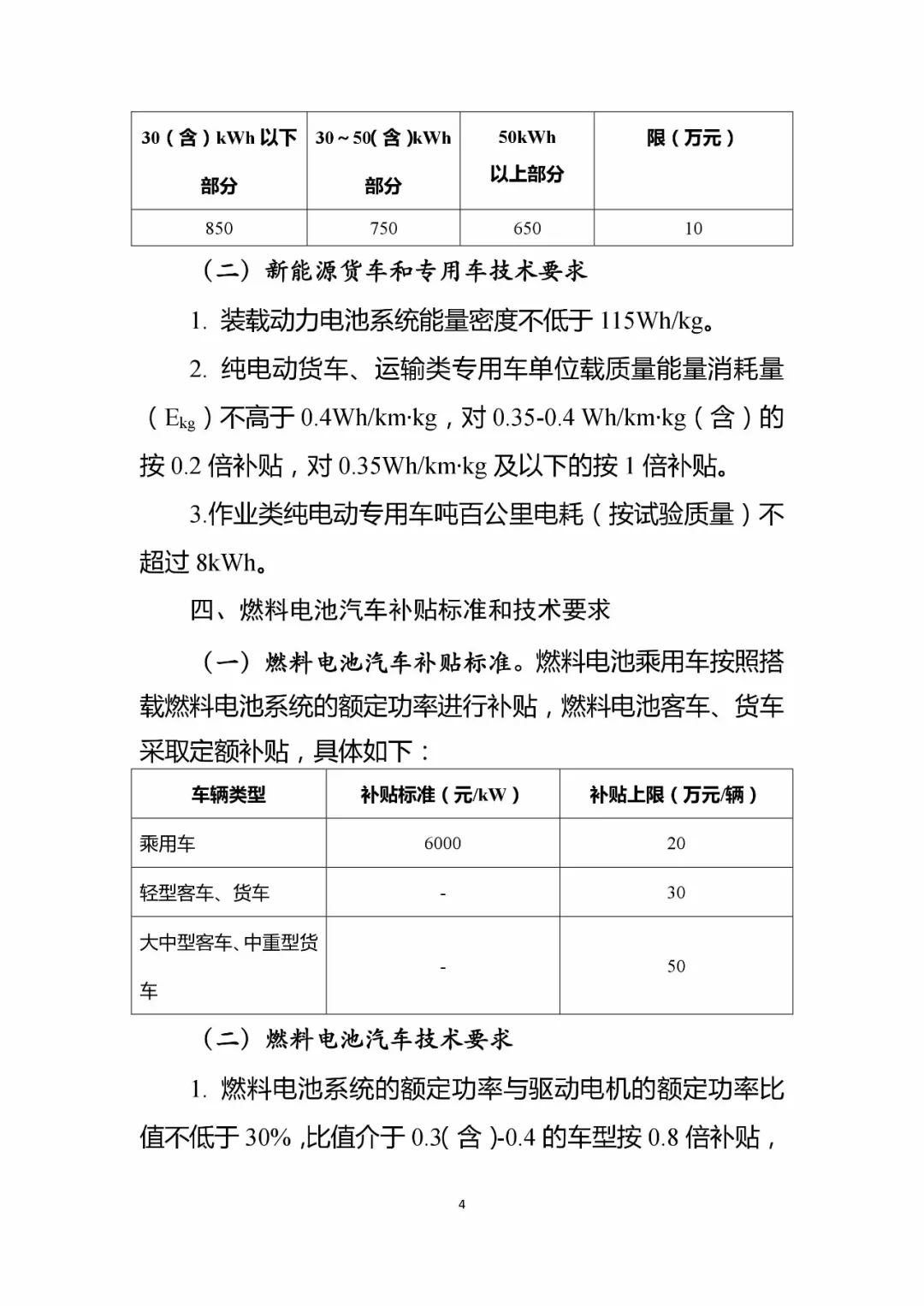 對燃料電池車而言,燃料電池乘用車依然按燃料電池系統(tǒng)的額定功率進行補貼,即補貼標準為6000元/kw,補貼上限為20萬元/輛;輕型燃料電池客車/貨車以及大中型客車/中重型貨車依然采用定額補貼方式,補貼上限分別為30萬元/輛和50萬元/輛。