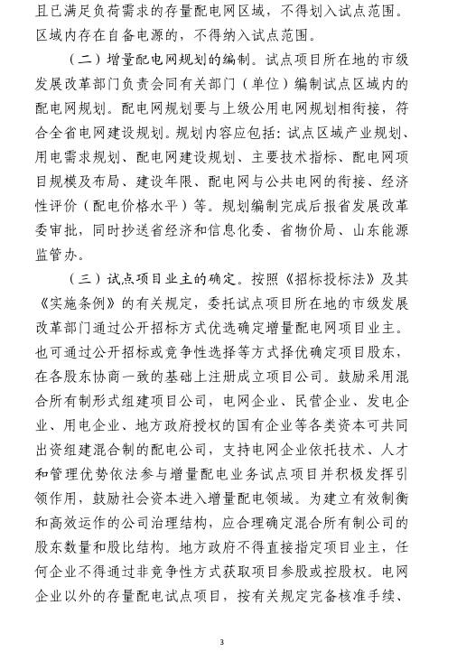 《山東省增量配電業(yè)務改革試點實施方案》印發(fā)