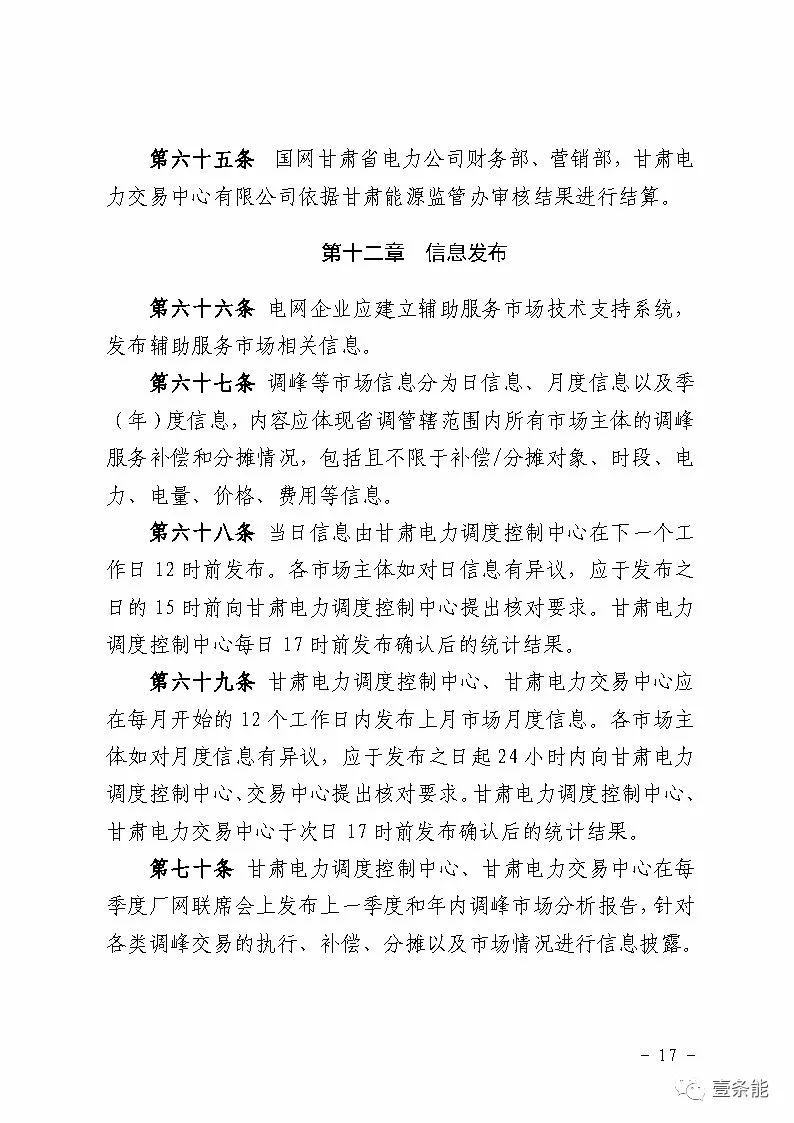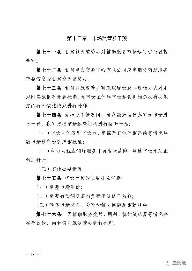 中國儲能網(wǎng)訊:國家能源局甘肅監(jiān)管辦日前發(fā)布了《甘肅省電力輔助服務(wù)市場運(yùn)營規(guī)則(試行)》,于2018年4月1日起執(zhí)行。電力輔助服務(wù)市場的市場主體為已取得發(fā)電業(yè)務(wù)許可證的省內(nèi)發(fā)電企業(yè)(包括火電、水電、風(fēng)電、光伏),以及經(jīng)市場準(zhǔn)入的電儲能和可中斷負(fù)荷電力用戶。自備電廠可自愿參與電力輔助服務(wù)市場。網(wǎng)留非獨(dú)立電廠暫不參與電力輔助服務(wù)市場。自發(fā)自用式分布式光伏、扶貧光伏暫不參與電力輔助服務(wù)市場。