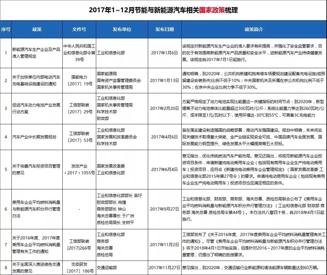 雖然已邁進2018年,但2017年國家對新能源汽車產(chǎn)業(yè)發(fā)布的相關(guān)政策仍應(yīng)關(guān)注,尤其是那些規(guī)定從2018年開始實施的政策辦法。