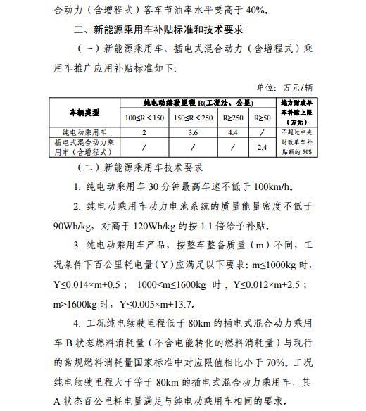 ▲ 購(gòu)車補(bǔ)助。對(duì)單位和個(gè)人購(gòu)買續(xù)駛里程(工況法)大于150公里的純電動(dòng)乘用車,按照中央財(cái)政補(bǔ)助標(biāo)準(zhǔn)1:0.5的比例給予地方配套補(bǔ)助;對(duì)純電動(dòng)客車、純電動(dòng)貨車和專用車按中央財(cái)政補(bǔ)助標(biāo)準(zhǔn)1:0.5的比例給予地方配套補(bǔ)助;其他類新能源汽車原則上按中央財(cái)政補(bǔ)助標(biāo)準(zhǔn)1:0.2的比例給予地方配套補(bǔ)助。地方配套資金含省市兩級(jí)資金,中央和地方補(bǔ)助資金總額不超過(guò)車輛售價(jià)的60%。根據(jù)產(chǎn)品類別、性能指標(biāo)等進(jìn)一步細(xì)化補(bǔ)助標(biāo)準(zhǔn)。