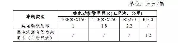 新能源乘用車補(bǔ)貼標(biāo)準(zhǔn)